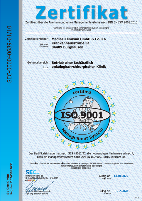 Das Medias Klinikum hat seine ISO-Zertifizierung 2025 erfolgreich erneuert.